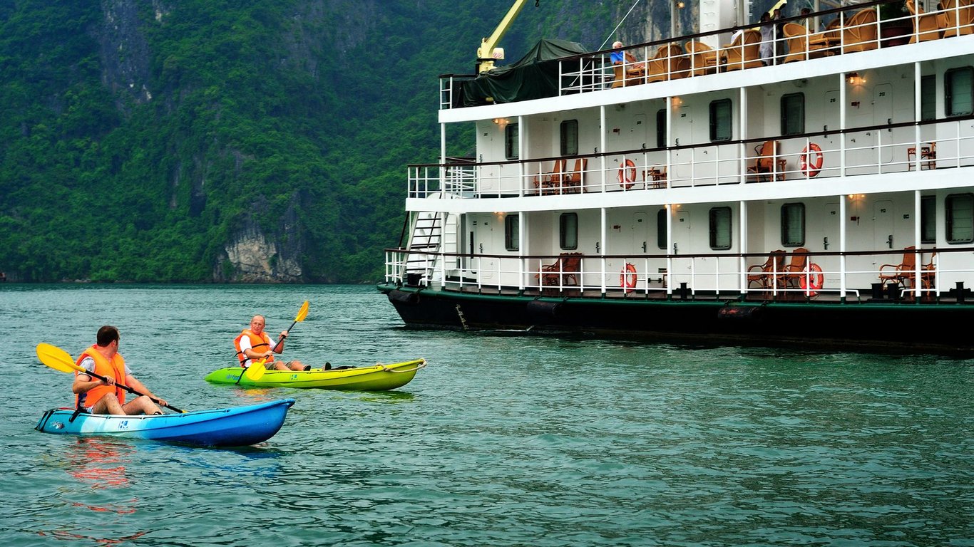 Embark on the Emeraude Classic Cruise for an unforgettable journey through Ha Long Bay. Enjoy breathtaking landscapes, kayaking, hiking, and vibrant onboard activities. Savour local delicacies, experience yoga at sunrise, and explore Sung Sot Cave before a relaxing brunch, making this cruise the perfect escape into nature's beauty.
