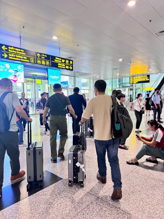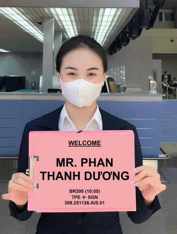 Tiễn khách xuất cảnh tại sân bay Tân Sơn Nhất, có bảng tên nhận diện, hỗ trợ và giúp khách làm thủ tục xuất cảnh tại 4 sân bay chính TSN, HN, DN, PQ